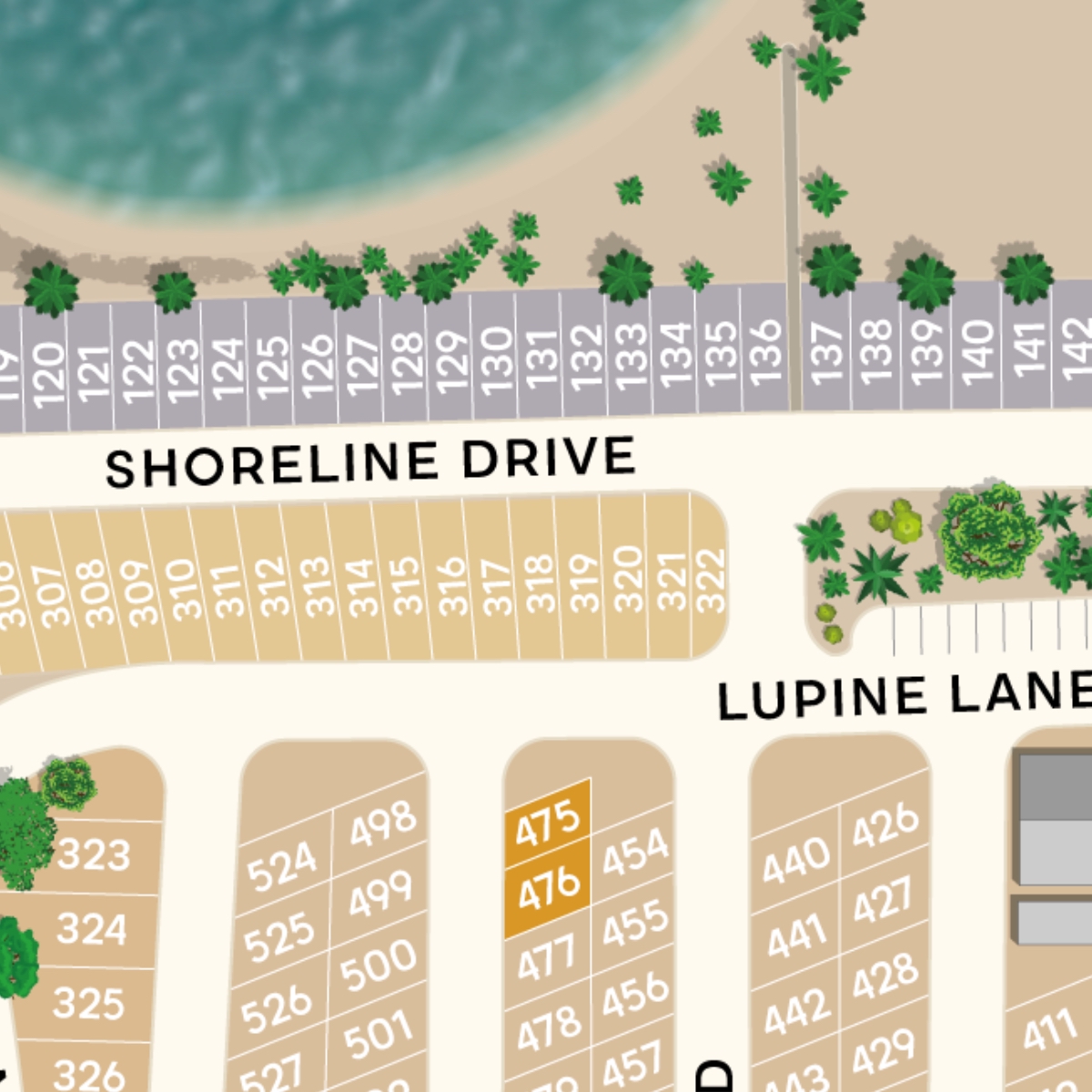 Located in the well-loved midsection of the park just a short distance to the waterfront, Diner, and other amenities, these two sites will be the first in the newly-named Village!